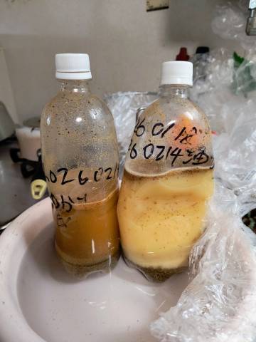 ちなみに、油粕プラス乳酸菌米ぬか発酵液のほうは、最初から一度も蓋をあけてません。100ccぐらいガスが出てるのかな?