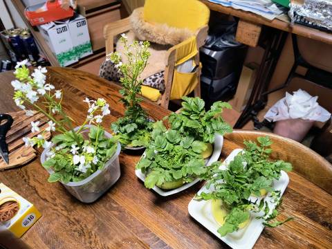 食いまくるのは、ねぎだけなんだか、水耕栽培のほぼすべてを記念撮影。3月末の、日本一周にむけて、身辺整理してます。